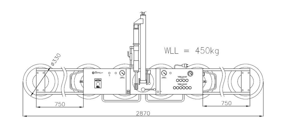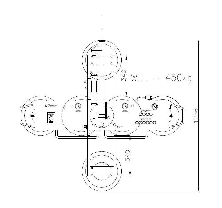 8 Saugteller 2870 x 1256 mm (450 kg) max. Plattengröße BxH: 3870 x 2250