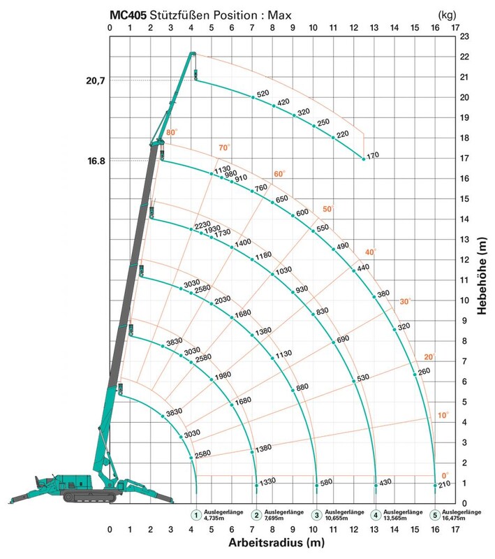 Anbaugeräte (optional): - Montagespitze 1500 kg - Fly JIB 520 kg