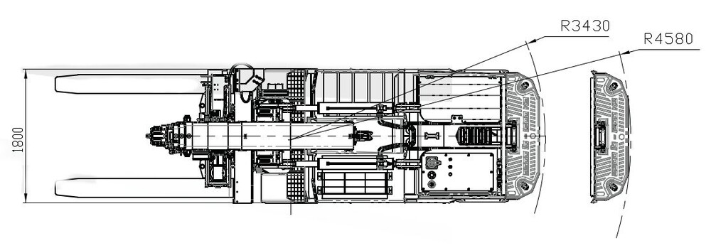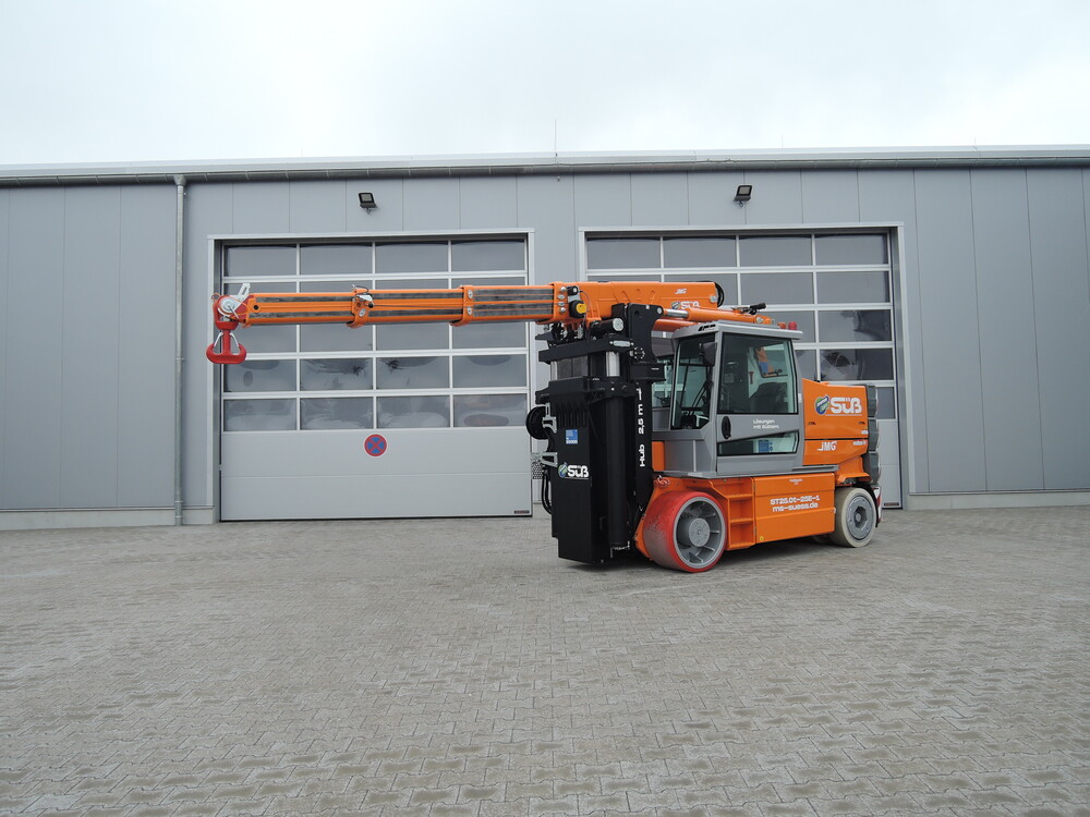 - Fernbedienung (auch Fahren möglich, Lastanzeige) - Arbeitsscheinwerfer - 2x Kameras - Abnehmbare Kontergewichte 6080 kg