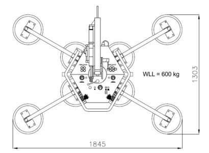 8 Saugteller 1845 x 1303 mm (600 kg) max. Plattengröße BxH: 2850 x 2350